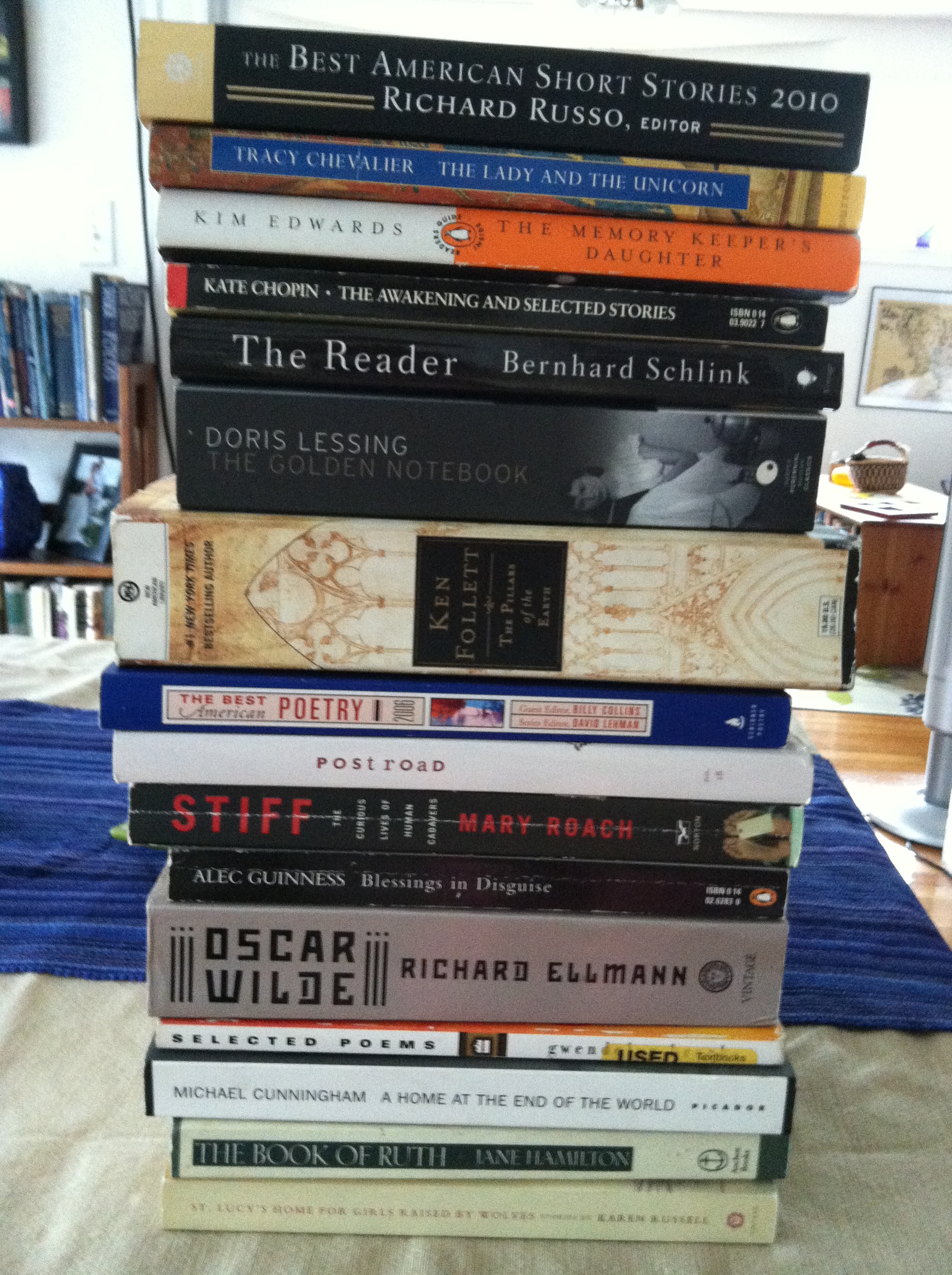 2. I’m the same way…it’s always so exciting. I enjoyed The Memory Keeper’s Daughter there in your pile and I otherwise also have a few of the same titles in my overflowing to-read stack!