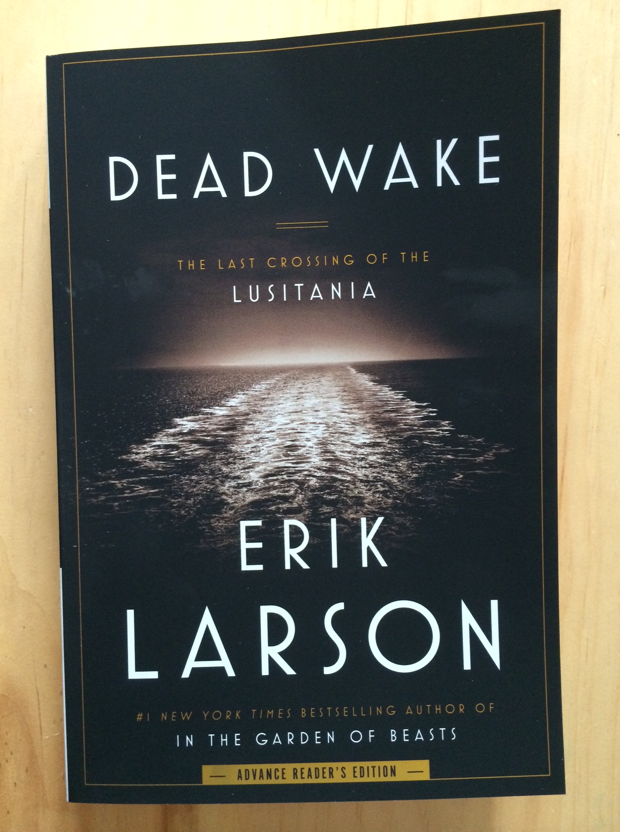 Erik Larson’s Dead Wake* is the meticulously researched tale of the Lusitania‘s final voyage, focusing on the ship, its passengers, the U-boat that sank it, Woodrow Wilson, and a top-secret British intelligence unit that could have saved the ship.