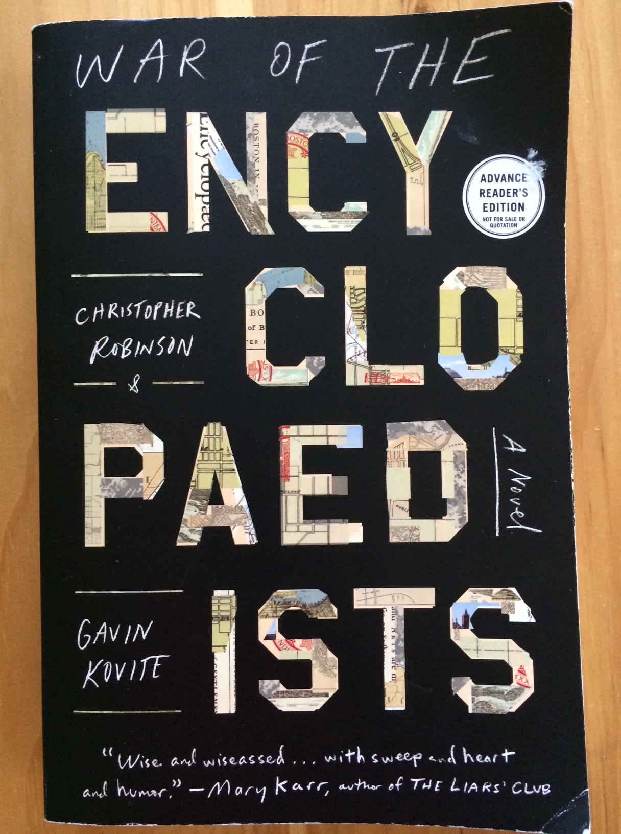 War of the Encyclopaedists* is a novel by two authors, Gavin Kovite and Christopher Robinson, about war and self-knowledge, romance and proto-hispters, and somehow it works.
