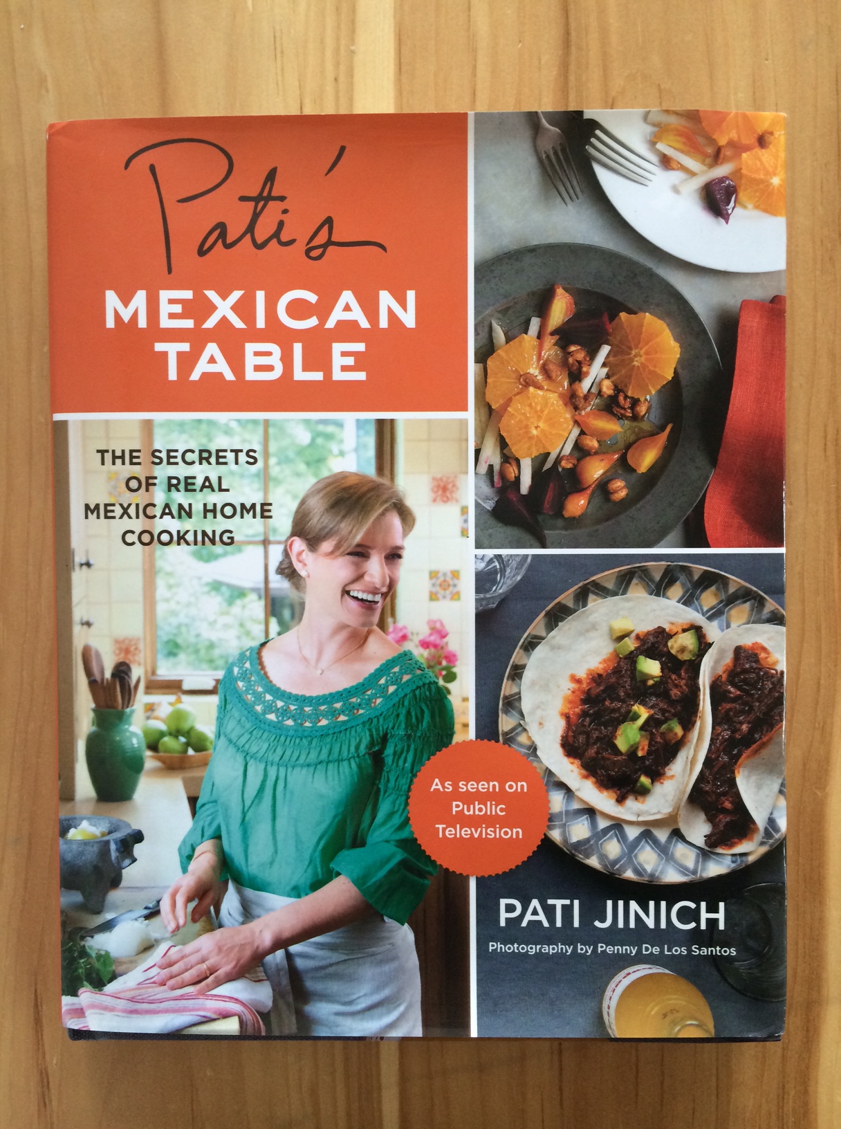 My other cookbook reading of late has been Pati’s Mexican Table: The Secrets of Real Mexican Home Cooking, by Pati Jinich. Ms. Jinich has a cooking show on PBS of the same name, which I’ve loved watching; her recipes look intoxicatingly good and Ms. Jinich is friendly, welcoming presenter. I’ve had my eye on the cookbook for months, and I happened to find a copy of it on sale at Sherman’s Books in Portland, Maine, much to my delight.