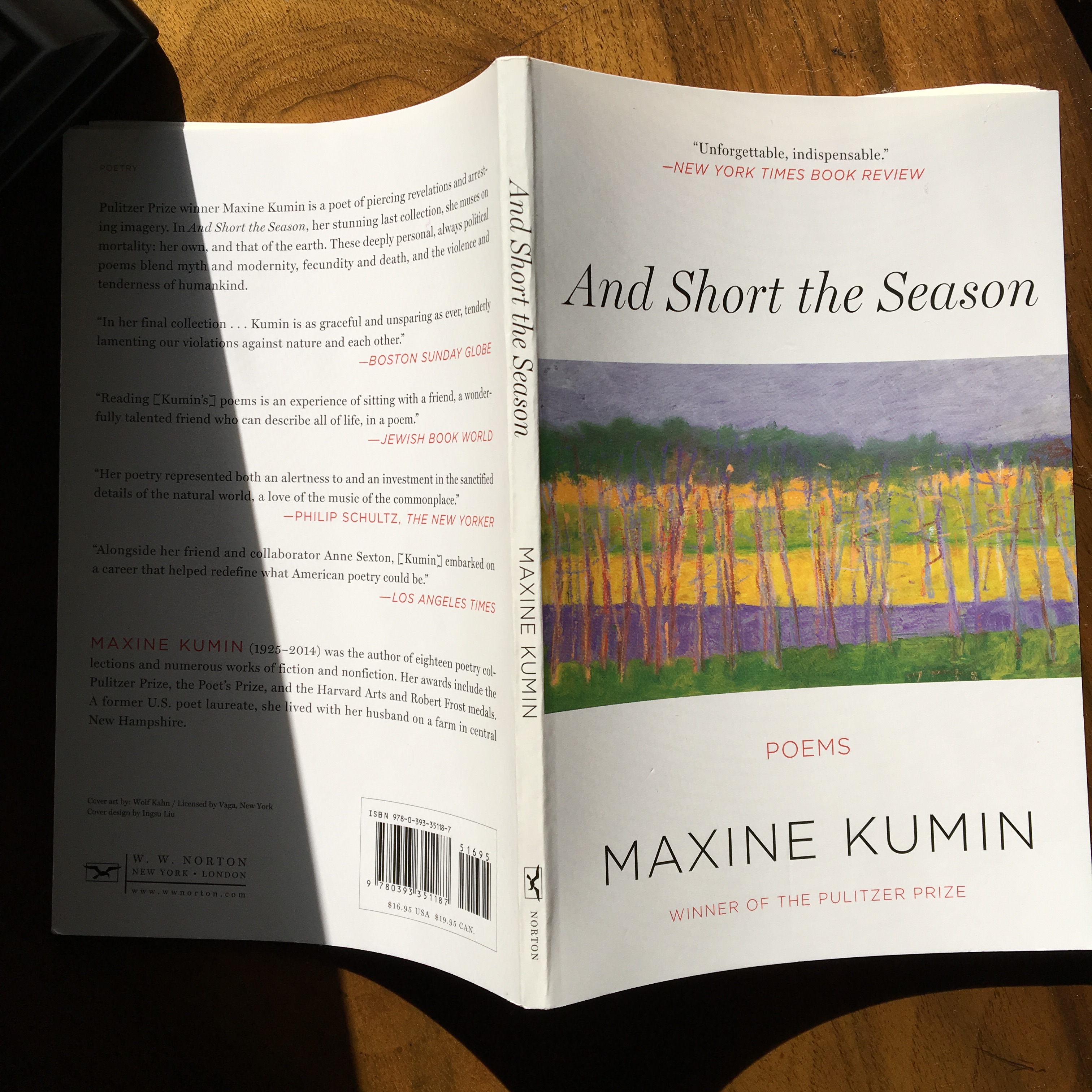 Last week, I had the pleasure of reading And Short the Season, the last collection by Maxine Kumin (1925-2014). Usually I try not to read late collections until I’ve read a few early collections for reference, but I couldn’t pass up this beauty when we stopped in at Island Books in Rhode Island last month.