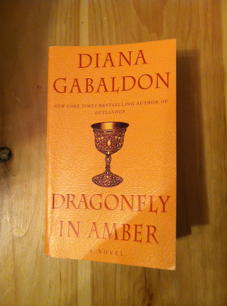 As a teenager, I came across Dragonfly in Amber, the first of Outlander‘s sequels, in the local library. I liked the title, and had no idea it was part of a series, so I just started flipping through. Oddly enough, the book kept falling open at some pretty steamy scenes (I’m looking at you, patrons of the Bertram Woods branch). Despite the fact that my parents never once in my life stopped me from reading a book, nor hovered over me while I read or browsed books, I was too chicken to check it out. So, rebel that I was, I’d pop by the shelf from time to time while I was in the library to read a chapter or two. I was a couple hundred pages in when someone took the book out, and I never found out what happened to Claire and Jamie. In fact, I forgot all about the book until Elena and a glass of pinot noir shook it loose from my uncooperative memory.Dragonfly in Amber