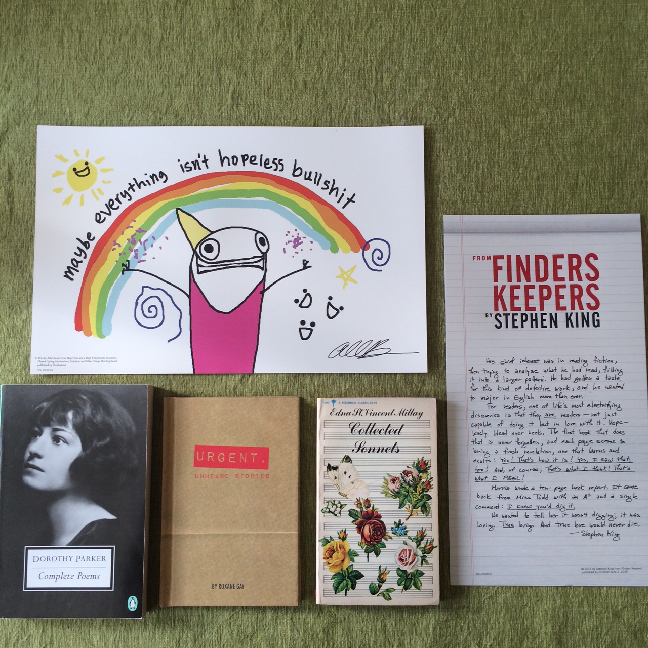 I read the Roxane Gay book Saturday night (mini review to come at some point in the next month or so) and flipped through my new poetry books on Sunday, when I also squeezed in a bit of Kate Atkinson’s latest novel, which I’m hoping to finish this week.